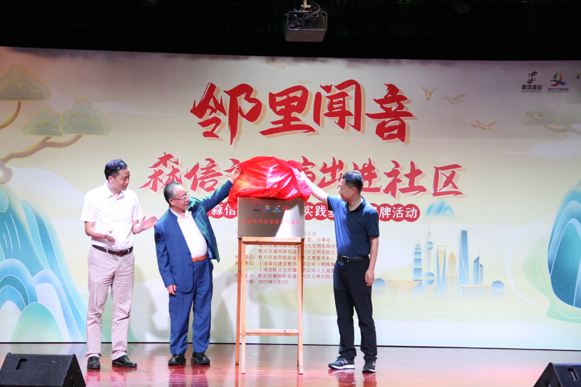 7月2日,“鄰里聞音”--森信文藝演出進(jìn)社區(qū)暨“森信鄰里志愿者實踐基地”揭牌儀式在曲陽社區(qū)文化活動中心一樓隆重舉行。